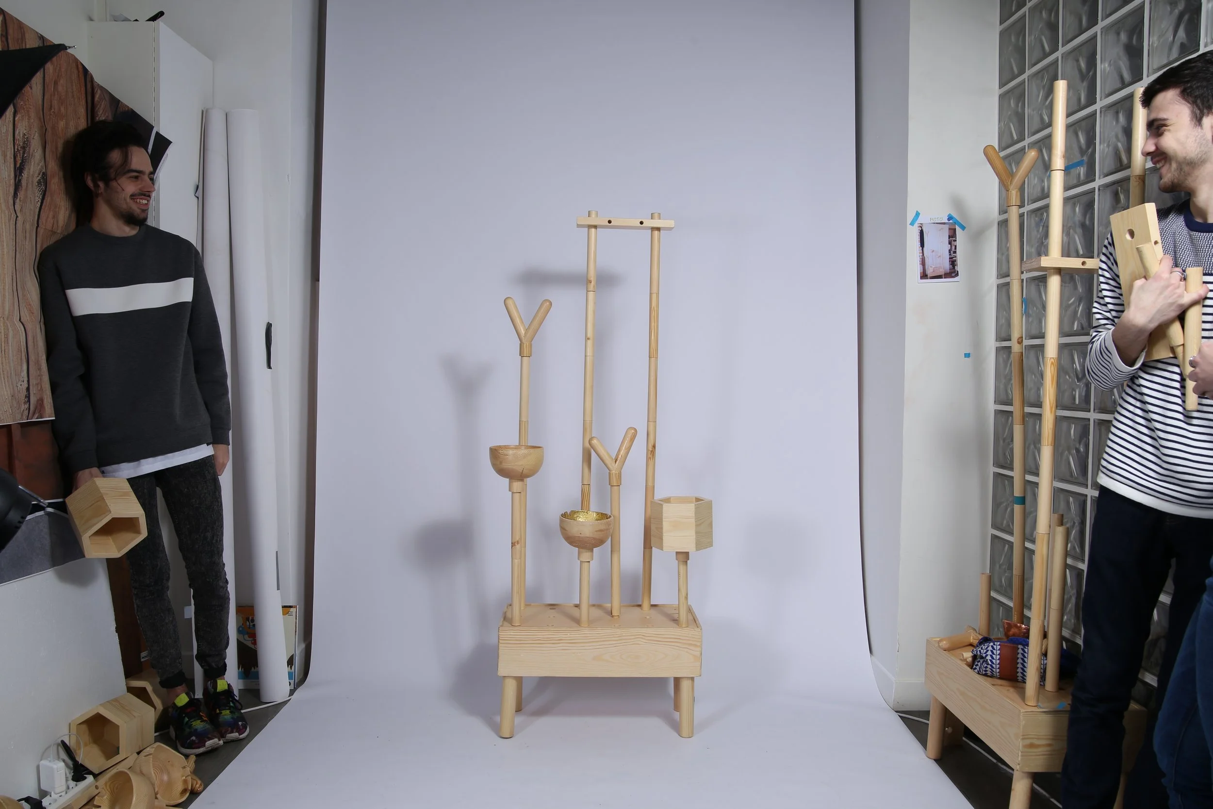 As I wanted to create a moment of intentional pause in this in-between space, often associated with a return to nature, I drew inspiration from nature itself. I studied products that have metaphorically imitated nature such as Andreas Bergsaker’s Blossom, Mushi, or Piedistallo.